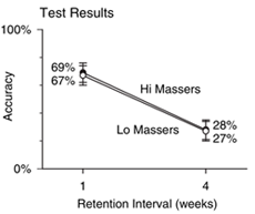 We can see those who block practice (i.e. practise what has been taught explicitly) perform well initially but over time do not learn as well. Those who work on a mix of questions from previously taught content, perform far better over time. Once again in this study, the questions were very procedural and we can see accuracy drops significantly over time - this begs the question: what else can we do? Although I must note at this point, interleaving in its truest sense, is something as Maths teachers we already know and have always done but maybe we need to ensure opportunities to do so are embedded in our curriculum scheduling.